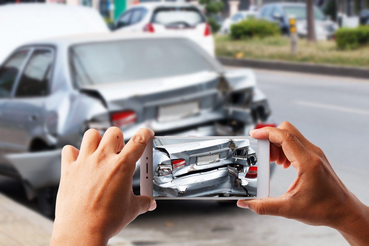 使用手机或相机拍摄事故现场全貌,并近距离多角度拍摄车辆受损细节。